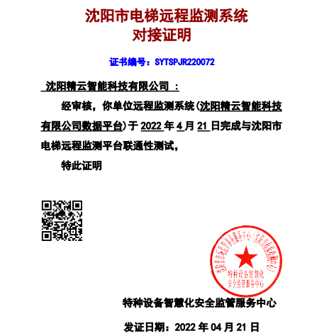 電梯物聯(lián)網(wǎng)設(shè)備通過(guò)沈陽(yáng)市電梯遠(yuǎn)程監(jiān)測(cè)系統(tǒng)驗(yàn)證